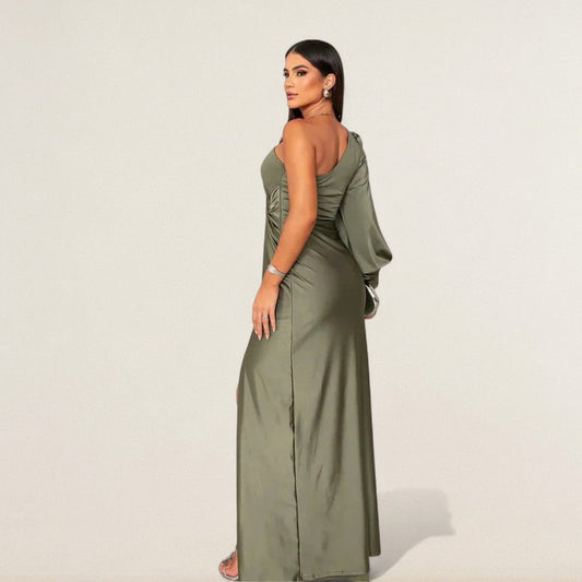 Lea™ | שמלה ארוכה בסגנון ג'ינס עם חריצים בצדדים